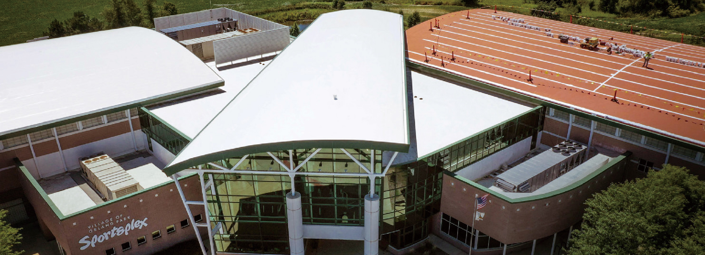 奧蘭帕克體育中心使用兩層GAF高固化矽利康屋頂防水塗料,守護原本老化的金屬板-PVC屋頂,確保未來20年的防漏保護。